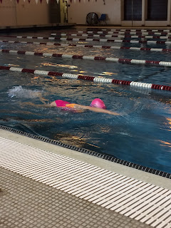 Allia swam hard and improved all but one of her times. It was a crazy weekend to have to get up early both mornings because we had violent storms in the middle of the night both nights! So I was impressed that she did so well.
