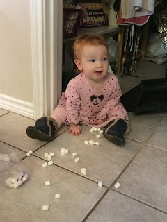 Cecilia has learned the important life skill of opening zip loc bags. Now she can sneak in the pantry when we are all busy and help herself. She discovered the marshmellows the other day, and those are a favorite of hers!